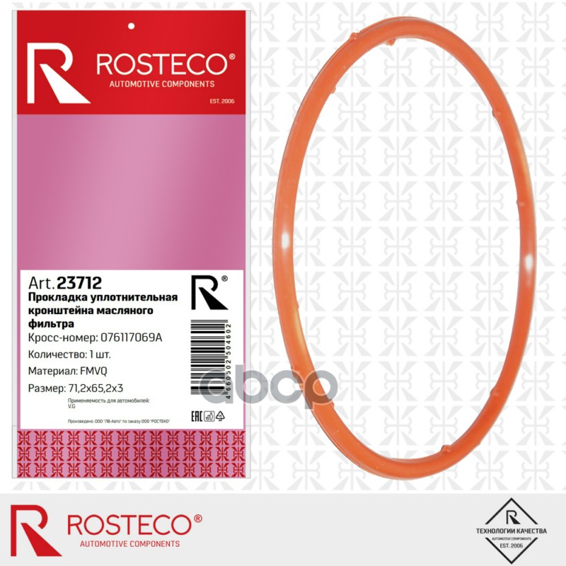 Прокладка масляного фильтра VAG, (65,2x71,2x3) FMVQ. 076117069A "ROSTECO"