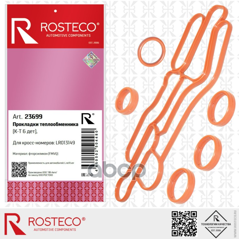 Прокладка теплообменника LAND ROVER, (к-т 6 шт) FMVQ. LR013149 "ROSTECO"