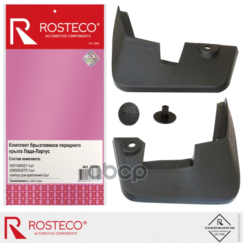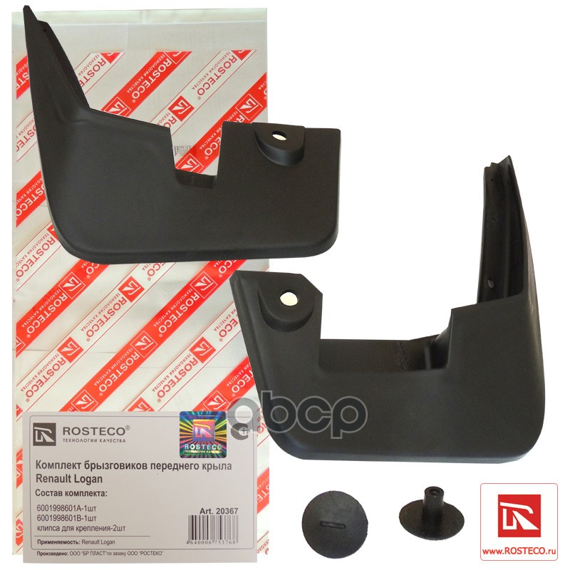 Брызговики Renault Logan передние 2 шт. (клипсы в комплекте) Rosteco 6001998601 6001998601;6001998163;6001998601А;6001998601В;638400560R;638413464R;7703081127;