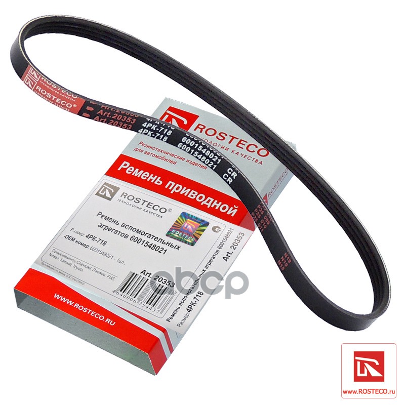 Ремень поликлиновой 4РК718 Rosteco Renault 6001548021 20353 4640006754437;575069;6001548021;8200211651;575094;9936400720;9936420720;96570669;96610563;25183066;117202M310;117202M311;11720D4202;11720D4202TM;11720280000000000;30678;4PK710;1987947888;4PK715;4