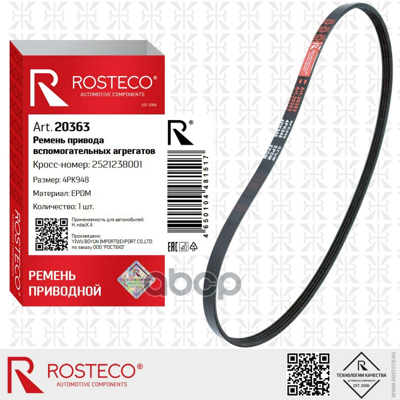 Ремень приводной SUZUKI, GM, HYUNDAI, VAG, NISSAN, поликлиновый. 2521238001 4PK-948 "ROSTECO"