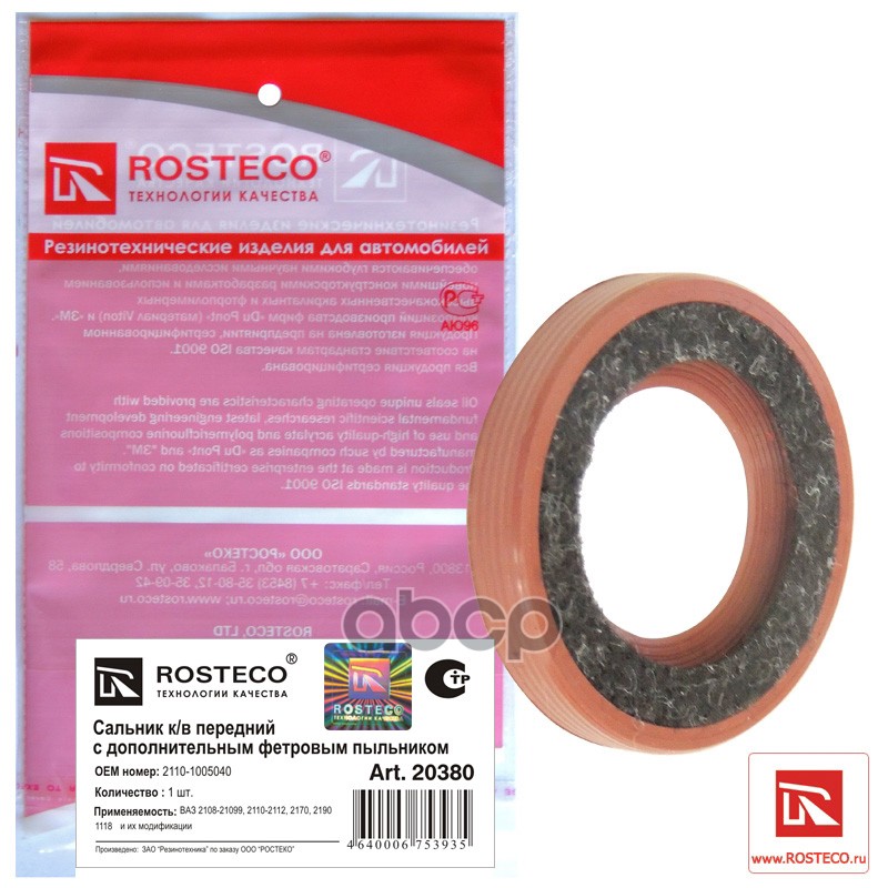 Сальник коленвала ВАЗ 2108 передний Rosteco с фетровым пыльником 2108-1005034-01; 2110-1005040 МКВ