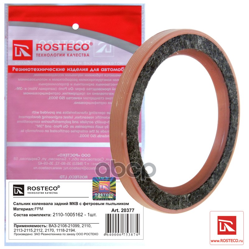 Сальник коленвала ВАЗ 2108 задний Rosteco с фетровым пыльником 2108-1005160-01; 2110-1005162 МКВ