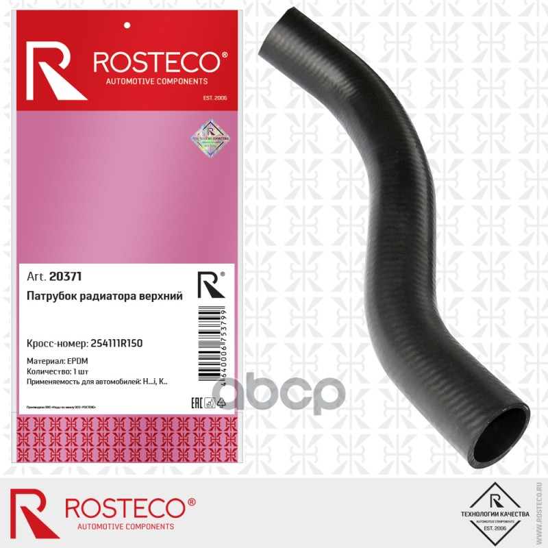 Патрубок радиатора Hyundai Solaris; Kia Rio 4 верхний Rosteco 25411-1R150 25411-1R150 4640006753799;254111R150;254111R300;254111R400;