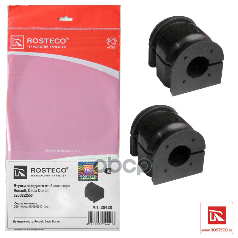 Втулка стабилизатора Renault Duster 11-, Kaptur 16-; Nissan Terrano 14- переднего Rosteco 20420 546114237R;8200852550;GOM001;40100;RNSBDUSTF;37726;BS10102;RU001;GOJ001;3617901;16146150009;1214086;805845;RB0930;FCR211161;