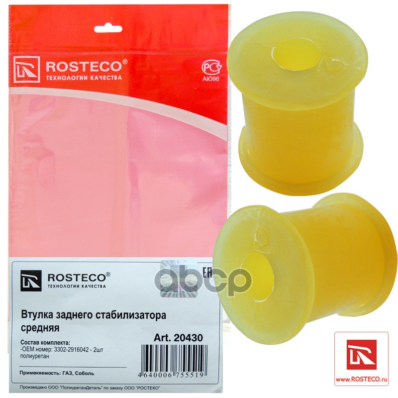 Втулка стабилизатора ГАЗ, заднего средняя (к-т 2 шт), полиуретан. 3302-2916042 "ROSTECO"
