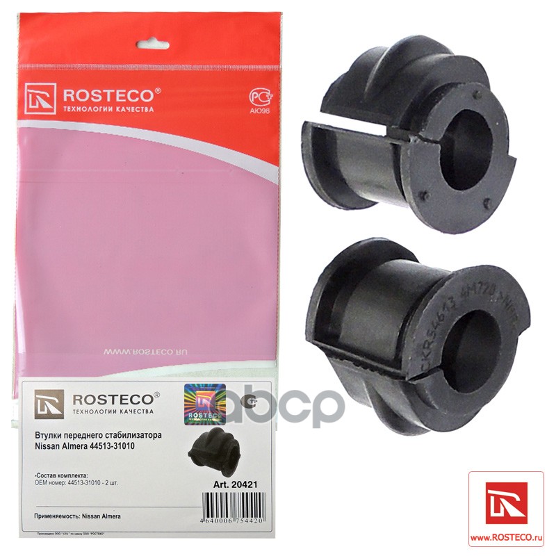 Втулка стабилизатора Nissan Almera (N16) 00-, Classic 06-, Sunny 98- переднего 2 шт. Rosteco 20421 NSBB15F;546134M420;546134M720;54613BN300;MP1028;C9002;3406701;RB1437;N2132F;841824;N4271014;3406701;MP1043;