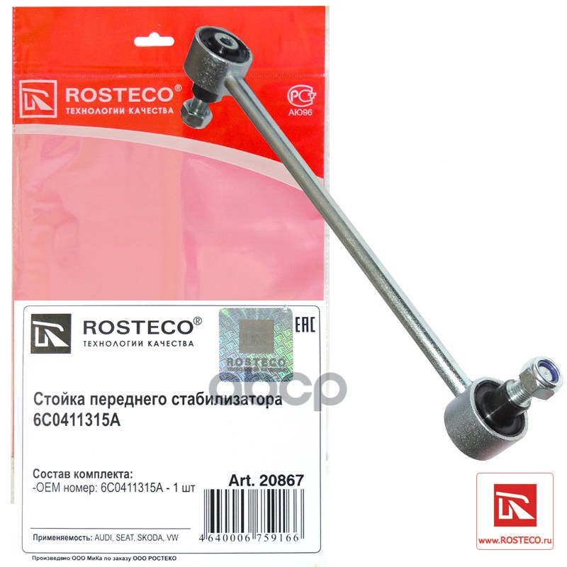 Стойка стабилизатора VAG Polo sedan 09-, Rapid 12-, Fabia 99- переднего Rosteco 20867 6Q0411315C;2Q0411315A;6C0411315;6C0411315A;6Q0411315A;6Q0411315B;6Q0411315D;6Q0411315E;6Q0411315F;6Q0411315G;6Q0411315H;6Q0411315J;6Q0411315L;6Q0411315M;6Q0411315N;6Q041