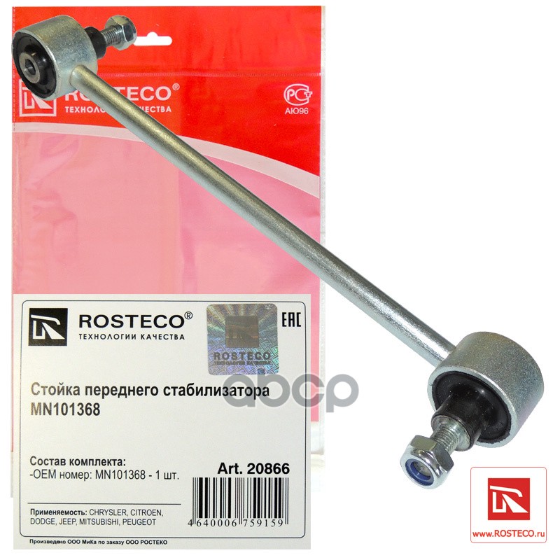 Стойка стабилизатора Mitsubishi ASX 10-, Lancer 07-, Outlander 07-; Peugeot 4007/8 переднего Rosteco 20866 05174185AC;ML9155;AW1350246LR;0523PC;10040380;10605523;10609913;106523;106913;11160600021HD;11160600037;1610930380;30401;3491101;41039;504137;508077