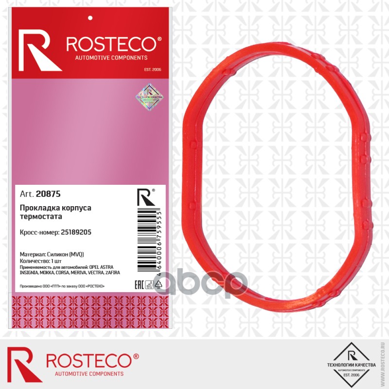 Прокладка термостата Rosteco 20875 /25189205/ силикон AVEO/CRUZE 09- 20875 25189205;1338351
