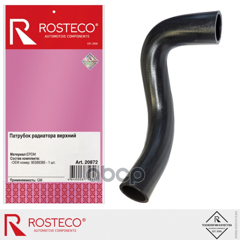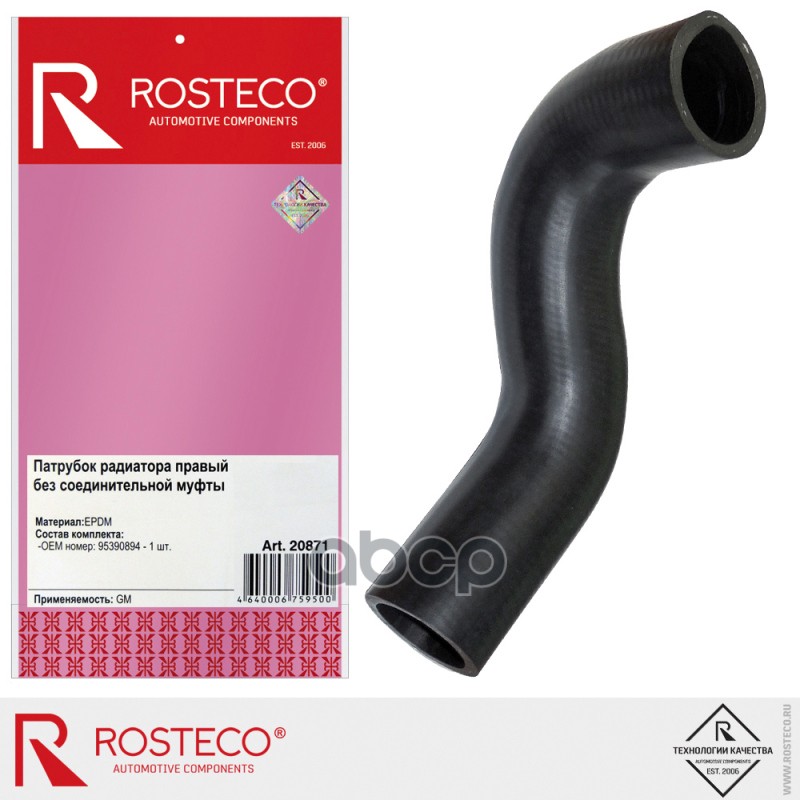 Патрубок радиатора GM правый без соединительной муфты EPDM 95390894 Rosteco 20871 4640006759500;4640006759500;95390893;96831560;95459414;95962296;
