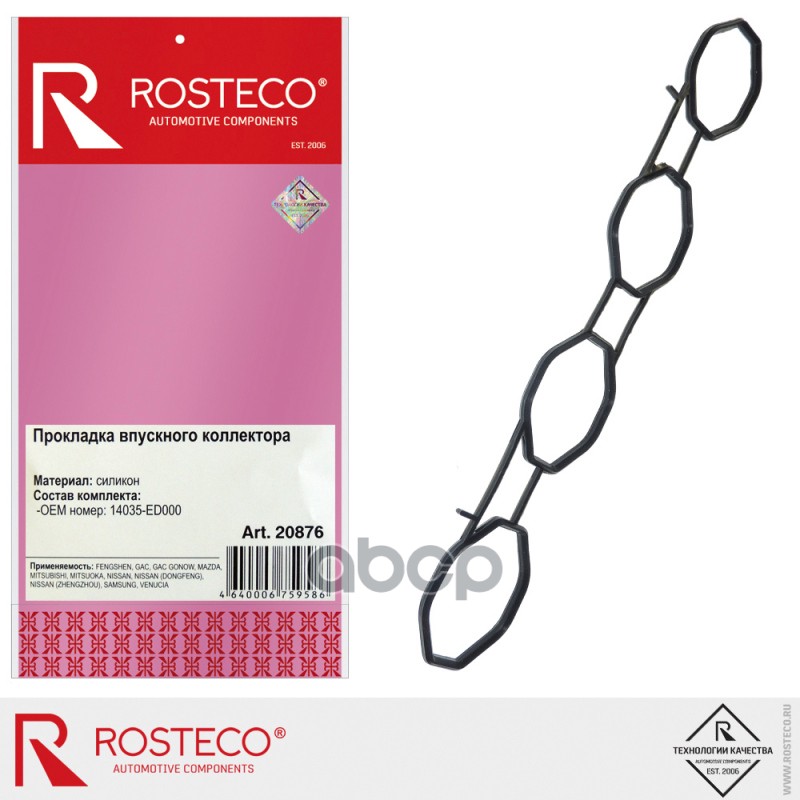 Прокладка коллектора впускного MAZDA, MITSUBISHI, NISSAN, силикон. 14035-ED000 "ROSTECO"