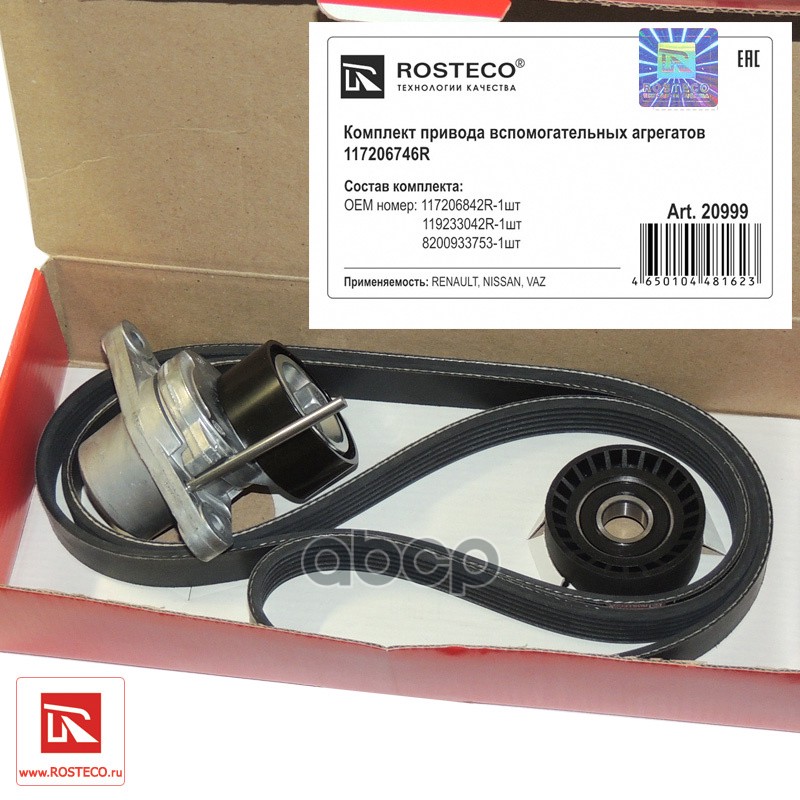 Комплект приводного ремня Renault Logan ph2, Sandero 16 клапанов ремень, 2 ролика 20999 117206746R