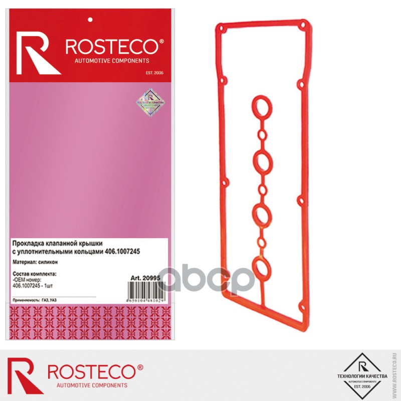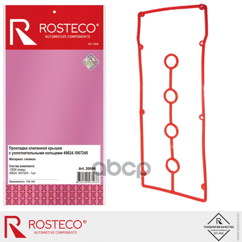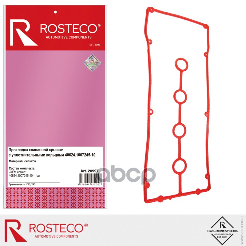 Прокладка клапанной крышки двс 405 Евро 3 с кольцами силикон Rosteco 40624-1007245-05 406241007245