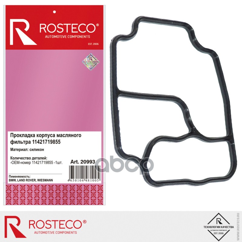 Прокладка корпуса масляного фильтра BMW; Land Rover силикон Rosteco 20993 4650104481005;11421719855;