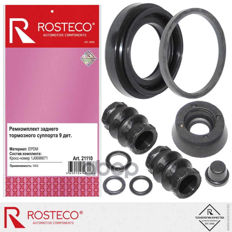 Ремкомплект суппорта Ford, Fiat, Seat, Peugeot, VW, 238010 (11 деталей) EPDM, ROSTECO 238010 238010