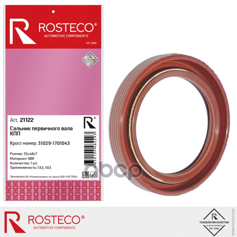 Сальник первичного вала КПП 35х48х7 Г-Зель, УАЗ, ROSTECO, NBR 31029-1701043 310291701043