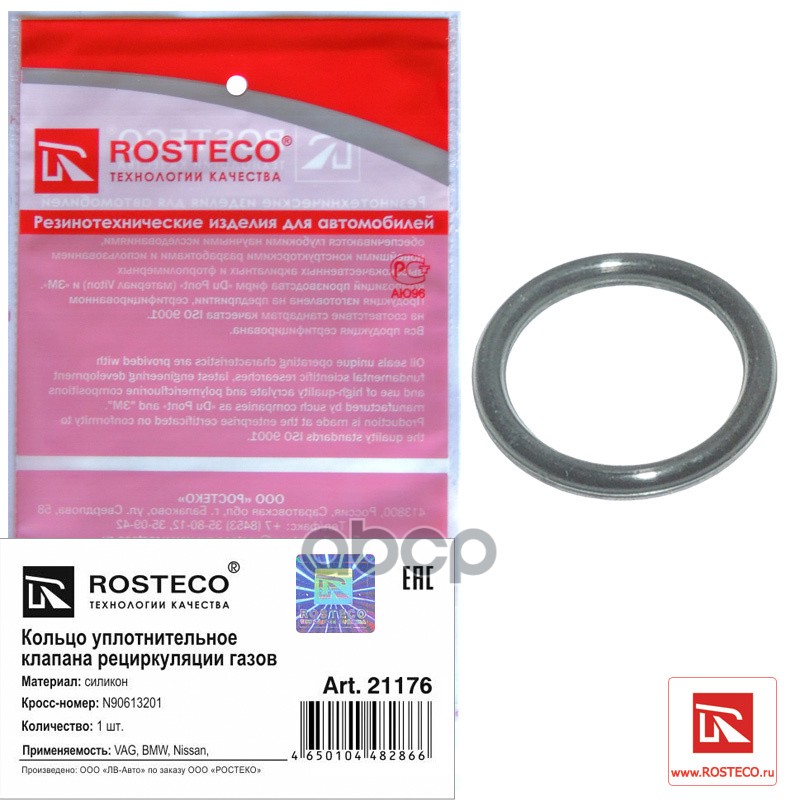 Кольцо уплотнительное клапана рециркуляции газов VAG, силикон Rosteco N90613201 4650104482866;N90613201;11421741129;15066AR010;150668H700;11421736259;