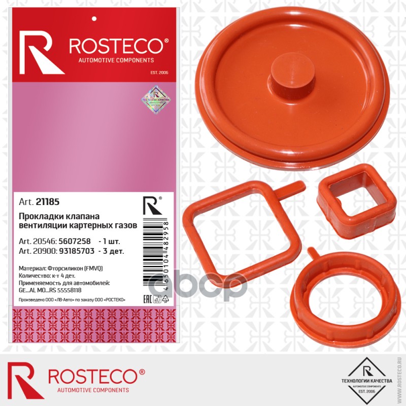 Прокладки клапана вентиляции картерных газов GM 55558118 (FMVQ - фторсиликон) к-т 4 детали ROSTECO 55558118 55558118; 93185703; 5607258