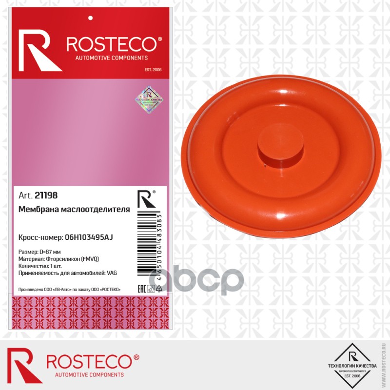 Мембрана маслоотделителя 06H103495AJ (D=87 мм) VAG (FMVQ - фторсиликон), ROSTECO 06H103495AJ 4650104483085;06H103495AJ;