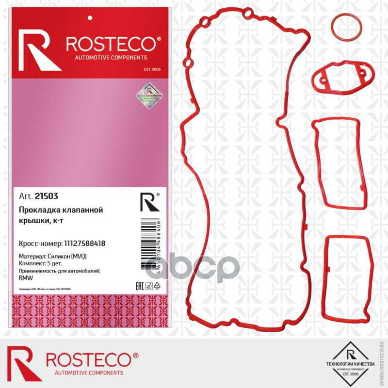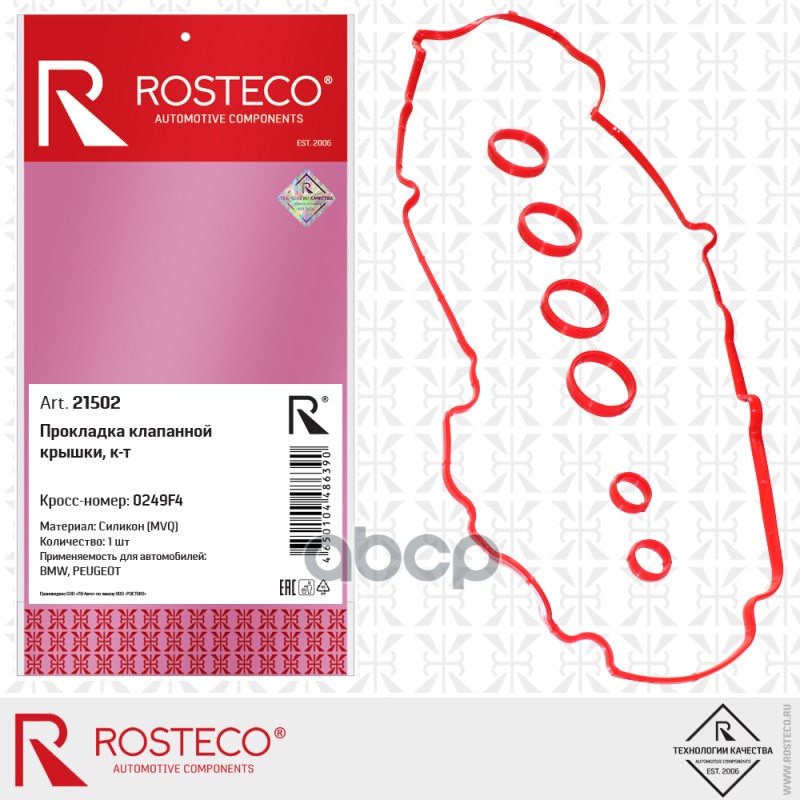 Прокладка клапанной крышки 0249F4 BMW, PEUGEOT (MVQ - силикон) к-т, ROSTECO 0249F4 0249F4