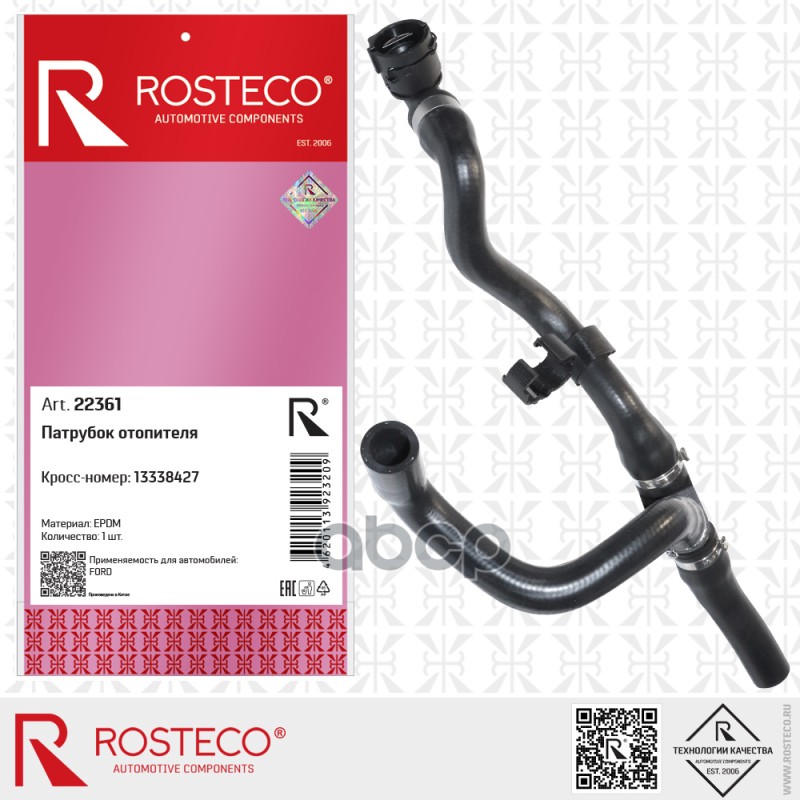 Патрубок отопителя подводящий в сборе 1491674 FORD (EPDM), ROSTECO