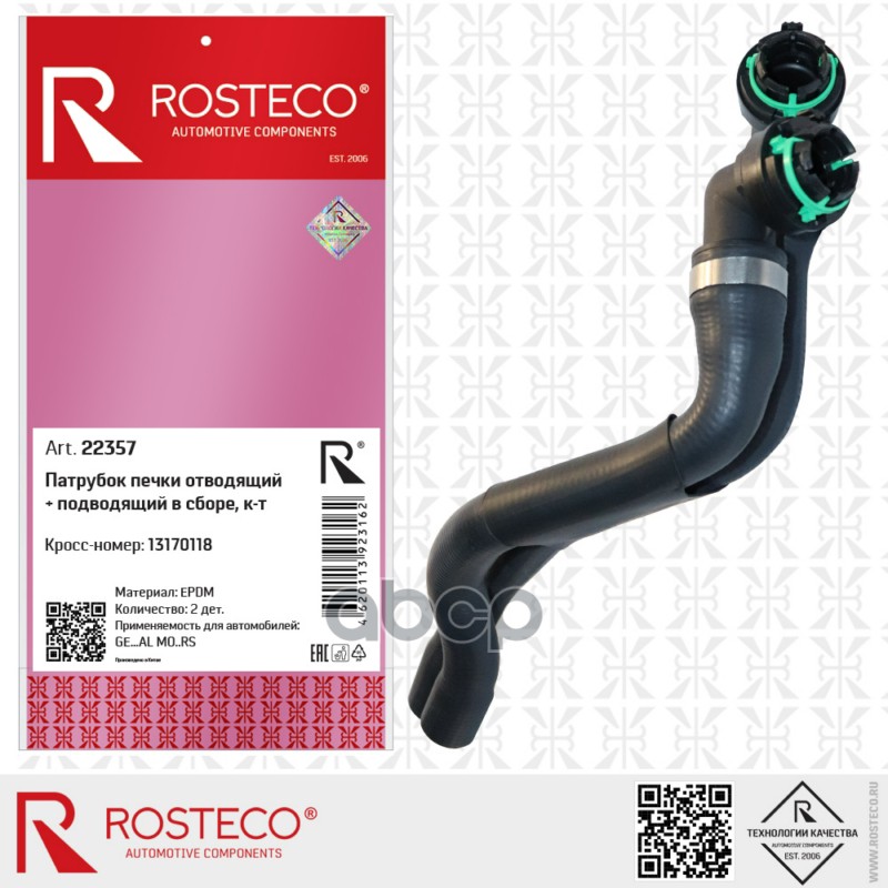 Патрубок отопителя GM, EPDM. 13338427 "ROSTECO"