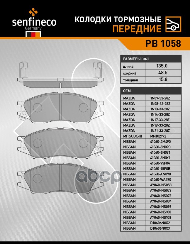 Купить запчасть PB1058 Колодки тормозные передние PB 1058 с доставкой в Эль-Монте.