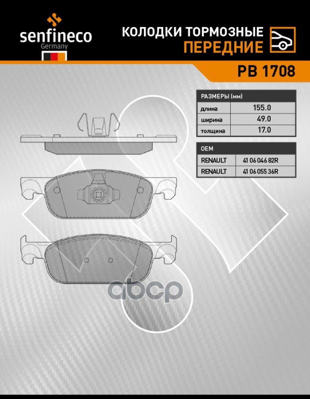 Наименование: Колодки тормозные передние PB 1708