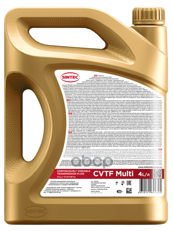 Наименование: Масло трансмиссионное 4л Sintec CVTF Multi 4л