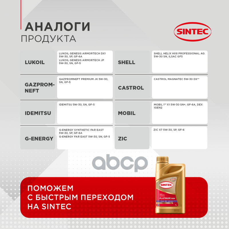 Наименование: Масло моторное синтетика 1л Sintec Platinum 7000 5W-30 GF-6A SP 1л
