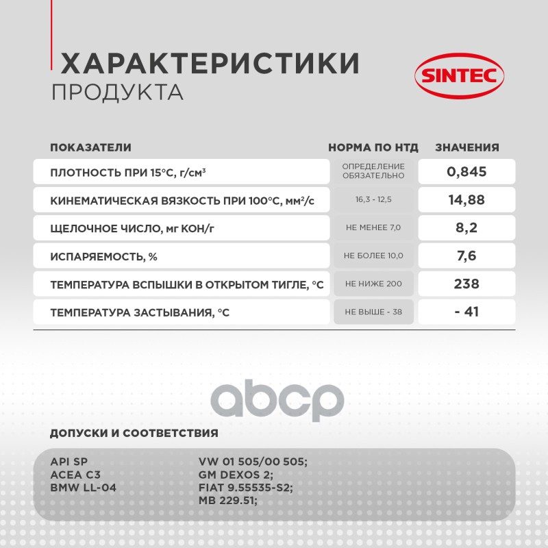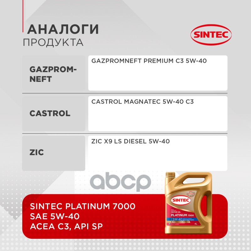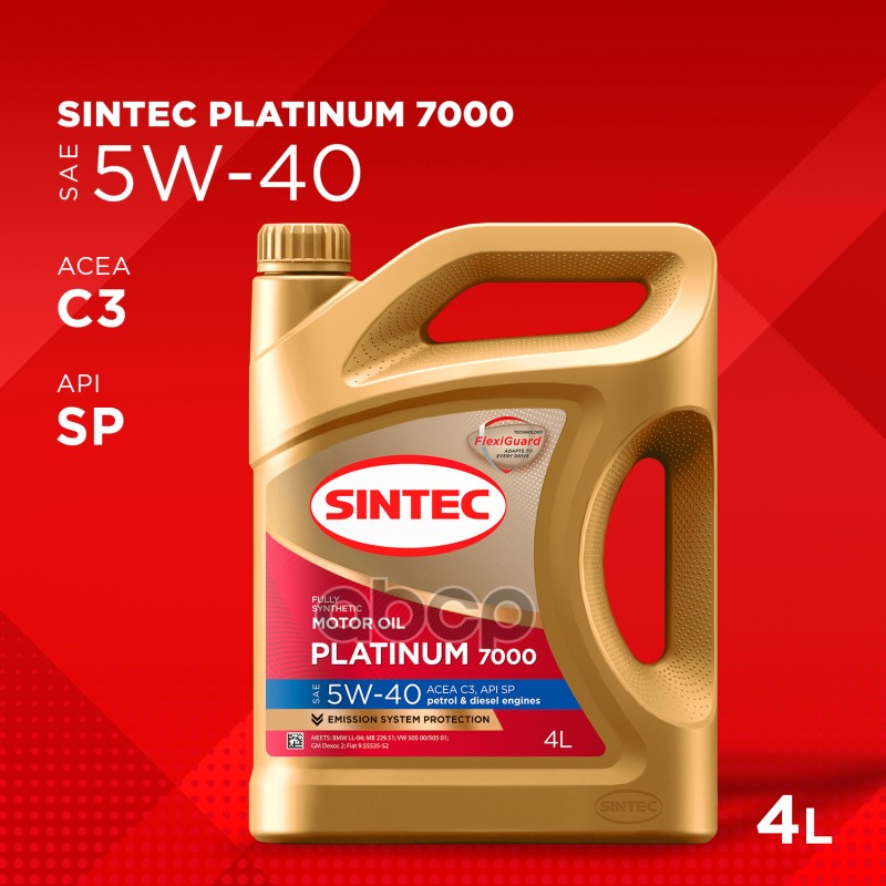 Наименование: Масло моторное синтетическое 4л Sintec Platinum 7000 5W-40 C3 SP 4л