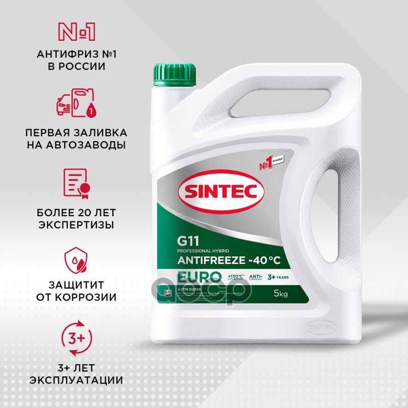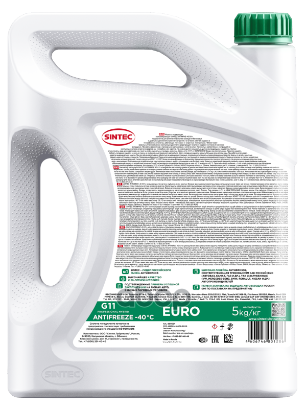 Наименование: Антифриз Sintec Euro -40 G11 зеленый 5L 00000000432, 800523, 990554
