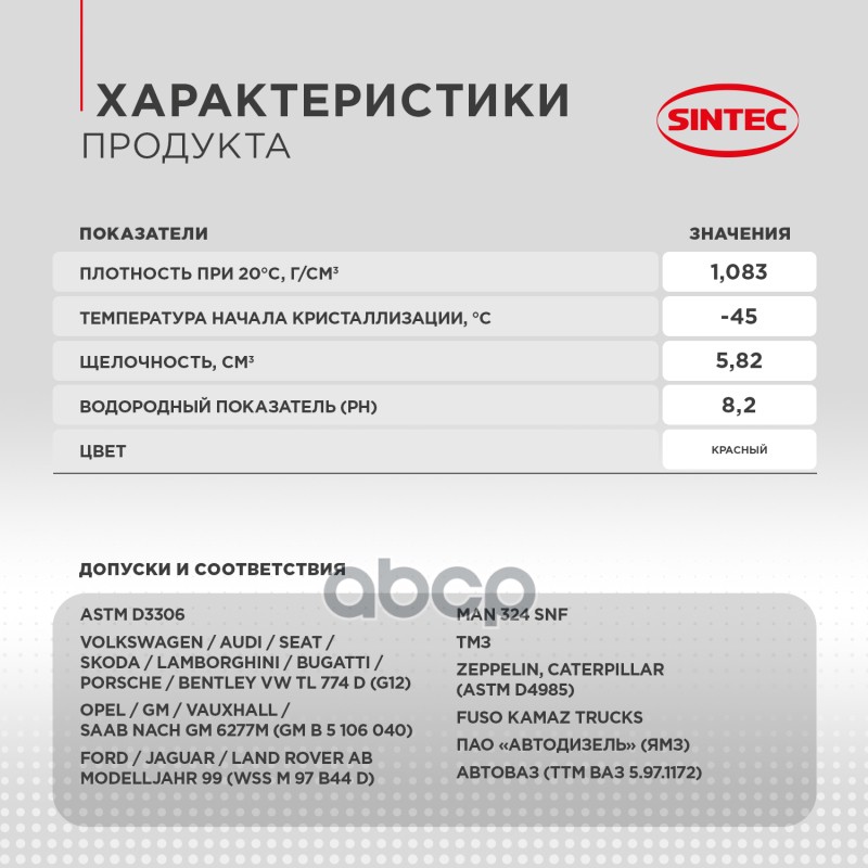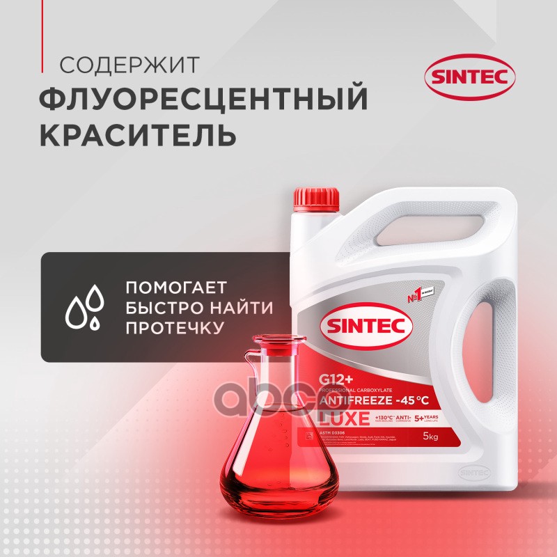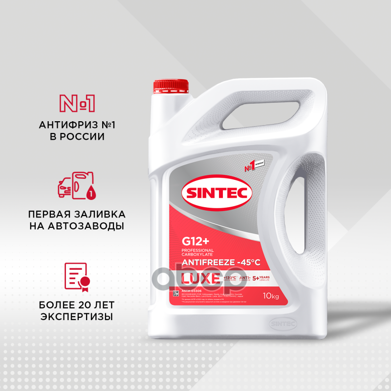 Наименование: Антифриз готовый красный G12+ (-45) 10кг Sintec Antifreeze Luxe G12+ red (красный) -45 10кг