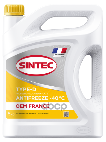 Антифриз готовый желтый (-40) 1кг Sintec Antifreeze OEM France Type-D yellow (желтый) -40 1кг
