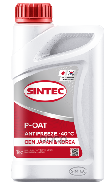 Антифриз готовый красный OEM Japan&Korea P-OAT (-40) 1кг Sintec Antifreeze OEM Japan&Korea P-OAT red -40 1кг