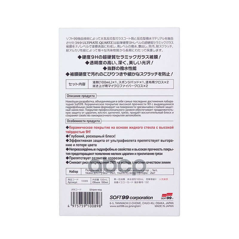 Купить запчасть 10089 Покрытие для кузова керамическое Soft99 H-9 Ultimate Quartz, 100 мл с доставкой по России.