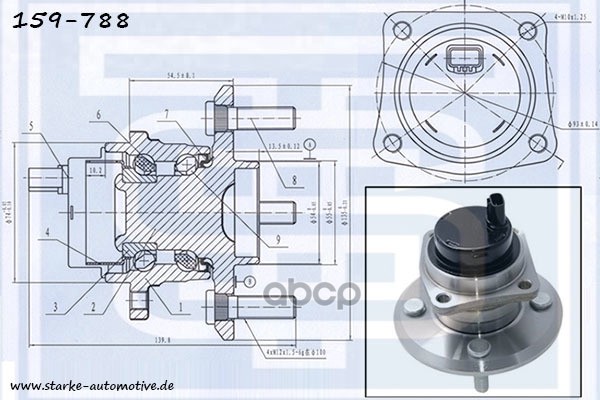 Ступица задняя (с подшипником, лев.=прав., с ABS) TOYOTA Corolla, Fielder, Runx, Allex 2WD '00-