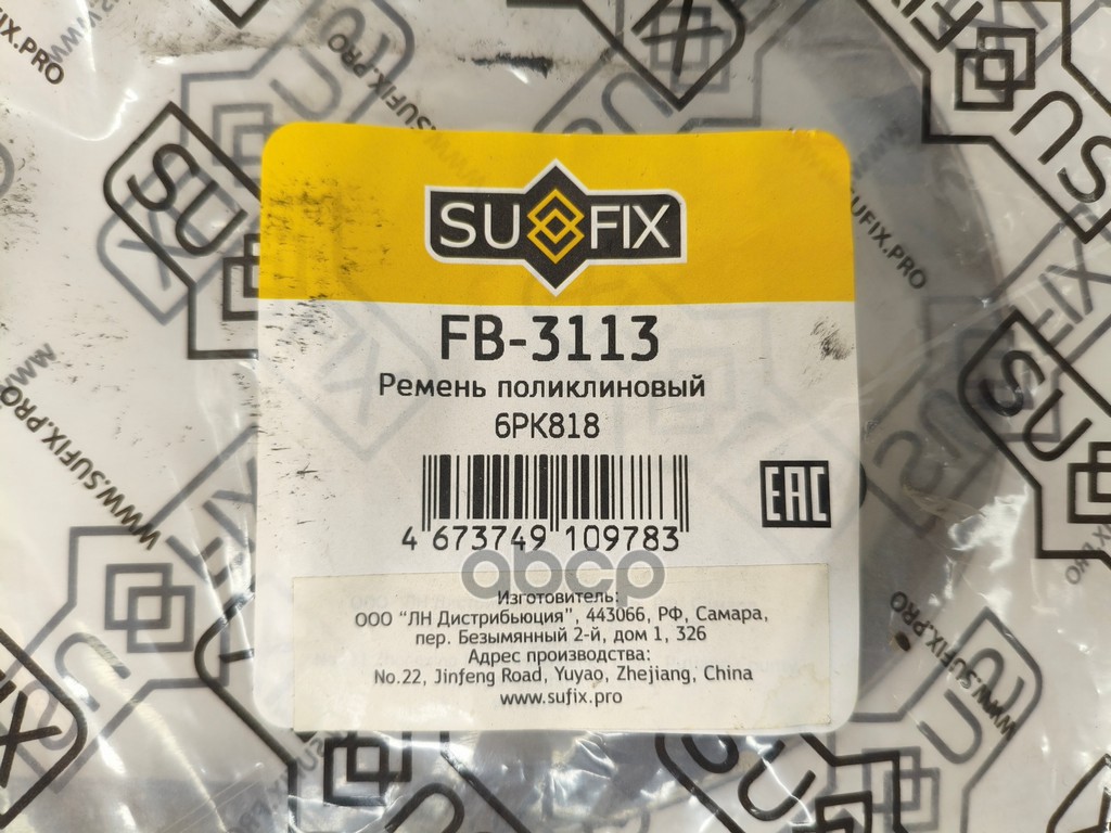 Бренд: SUFIX, артикул: FB3113, Ремень поликлиновый 6PK0818 FIAT Punto 1.9 В (01-), NISSAN Almera (N16) 1.5 (03-)/Primera (P11) 1.6 16V (96-01)/Primera (P12) 1.6 16V (02-), SCODA Fabia 1.4TD (05-08), VW Polo 1.4 D (05-) 6PK0818;03G903137H;11720-4M512;11720-9F600;117209F610;6PK820;6PK818. |