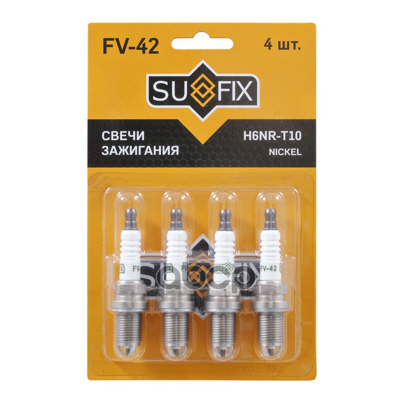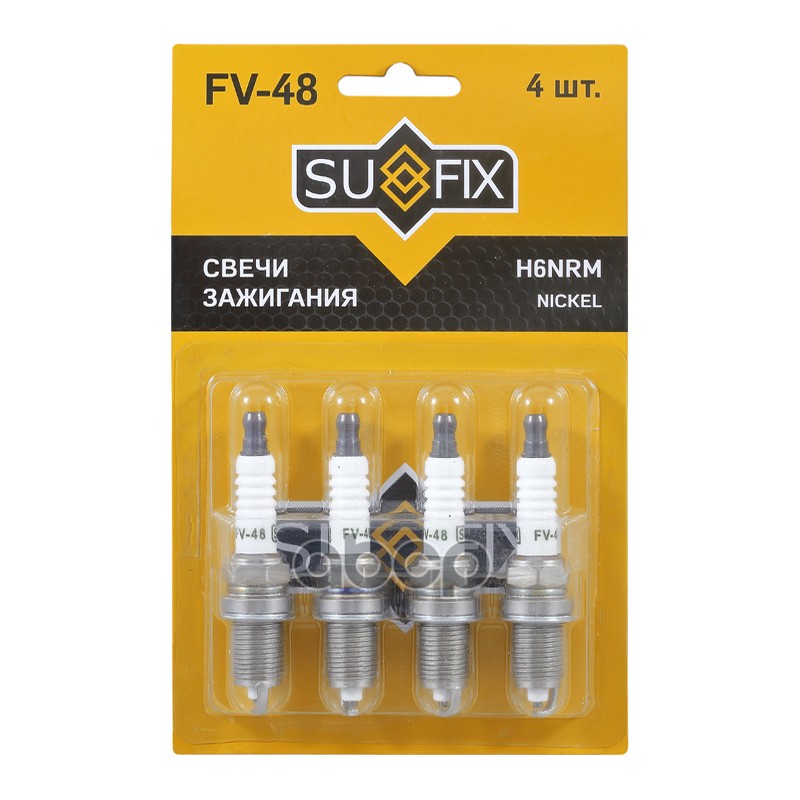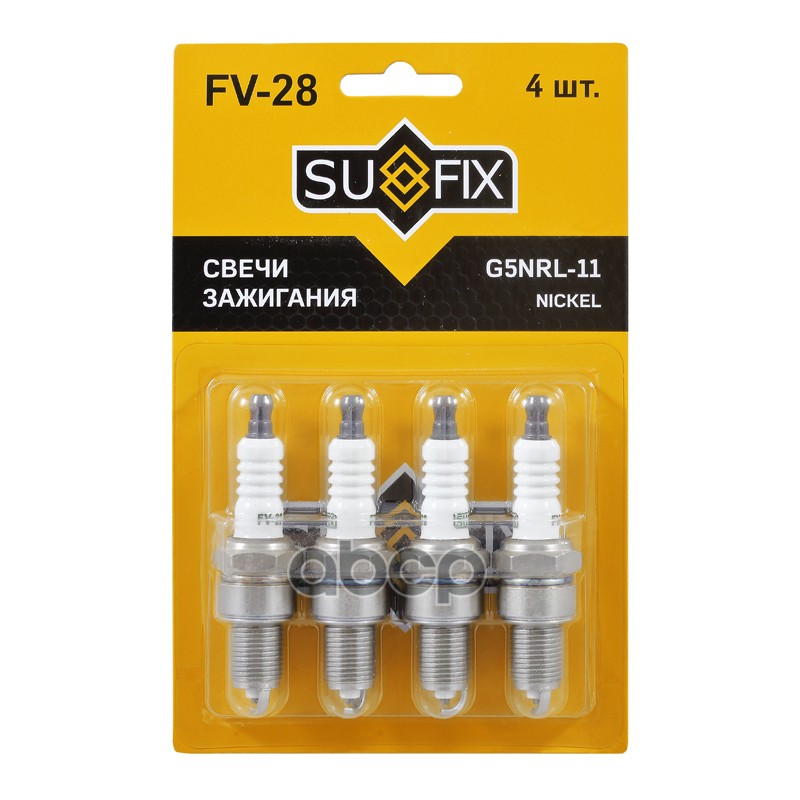 Свеча зажигания SUFIX FV-41 2526, 5776, 9091901164, 90919-01164, 9091901165, 90919-01165, 9091901242, 90919-01242, BKR5EYA11, BKR5EYA-11, FV41, IK16, K16RU11, K16R-U11, VK16