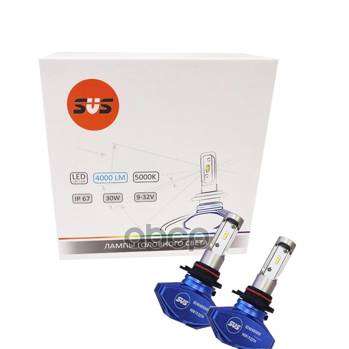 Наименование: Комплект светодиодных ламп SVS HB3 (9005) серии S1+( CSP-чип/IP67/4000Lm/5000K/9-32V/30W)