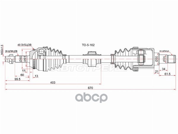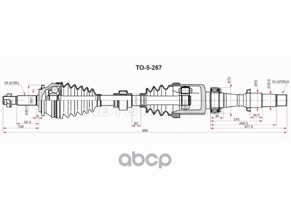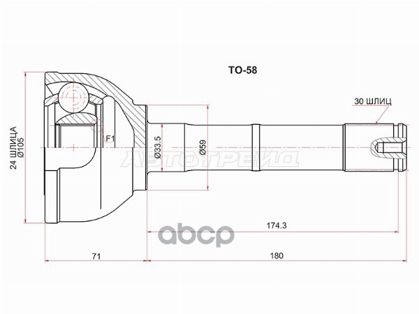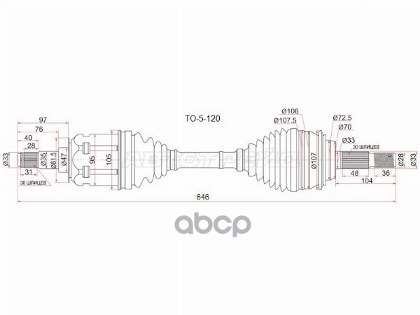TO512//Шрус (Спереди/ Внутр) Toyota Camry (XV10) 90-96 / Lexus ES 91-96 / Toyota Avalon 94-04 / Camr