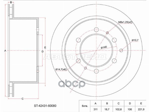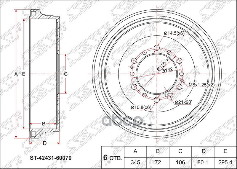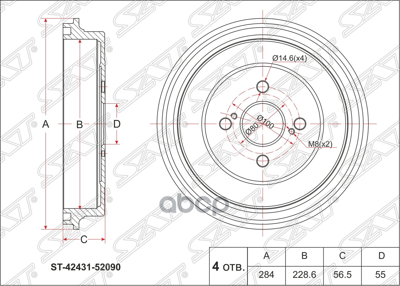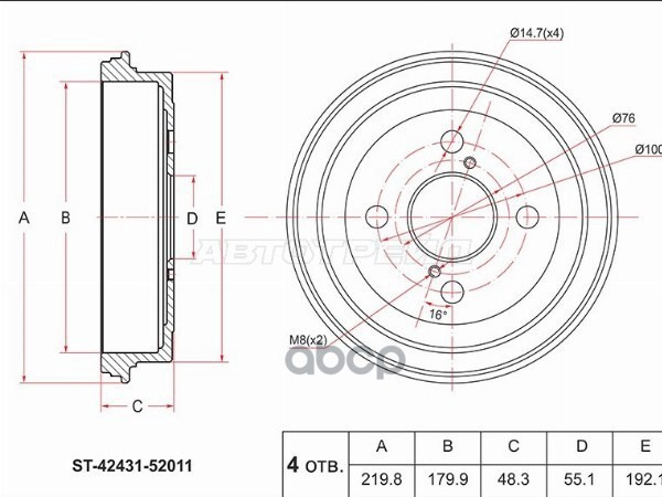 Барабан тормозной задний Toyota NCP1# SCP10/11 4243152010, 42431-52010, 4243152011, 42431-52011, ST4243152011
