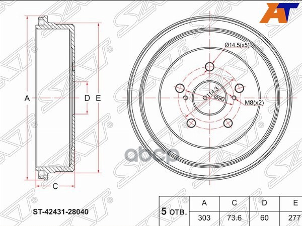 Барабан тормозной задний Toyota AE10#/11# EE101/111 CE100/110 AT212 4243112130, 42431-12130, 4243112180, 42431-12180, 4243120250, 42431-20250, K110710, ST4243120250