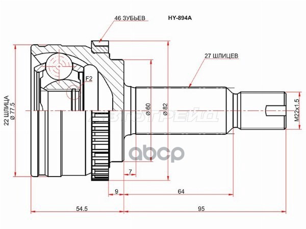Шрус внутренний Kia Sportage 2.0L 04/08-10/05 2211NS20LH, 2211-NS20LH, 495001F200, 49500-1F200, 495011F200, 49501-1F200, 495921F200, 49592-1F200, 496001F000, 49600-1F000, HY503