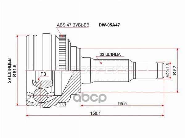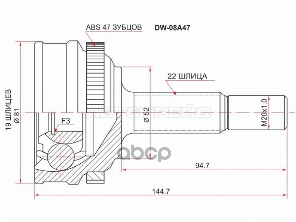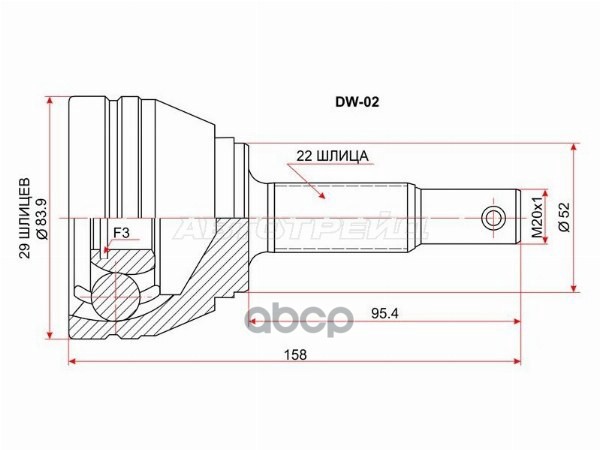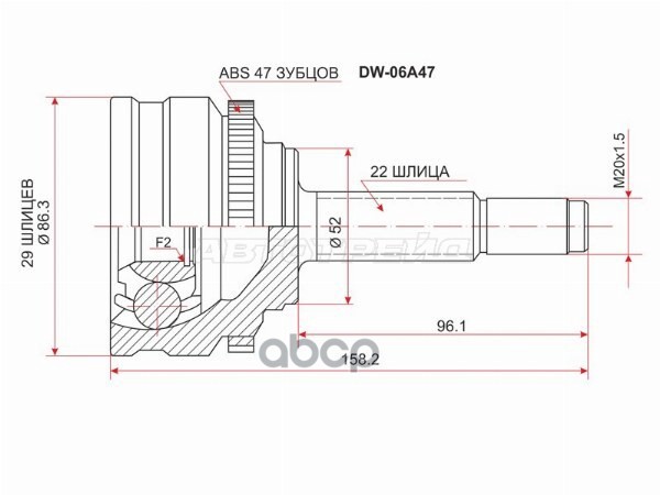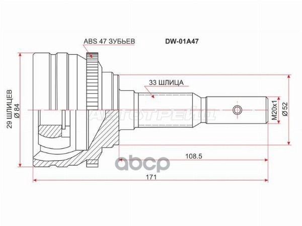 Шрус (Спереди/ Наруж) Chevrolet Lanos 05-09 / Daewoo Lanos 97-08 / Espero 90-99 / Nubira 97-03 / Rez