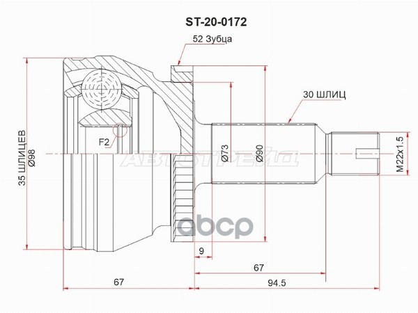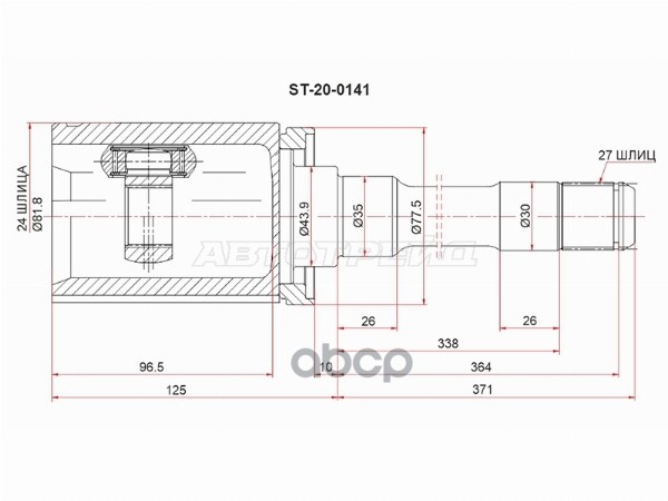 Шрус (Спереди/ Справа/ Внутр) Toyota RAV4 (XA30,XA40) 05-19 / Alphard (H20) 08-15 / Blade 06-12 / Es