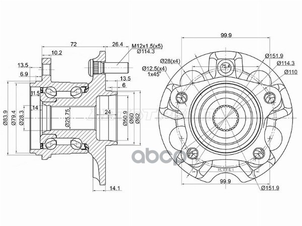 Подшипник ступицы задний Toyota ACA30/31/33 GSA33 ALA30/41 ZSA30/44 ASA44 AGZ15 AYZ15 ZGZ15 NX200/200T/300H AVU65 ZSU65 ANA15 NZE154/184 ZRE154 MXUA85 4241042060, 42410-42060, ST4241042040