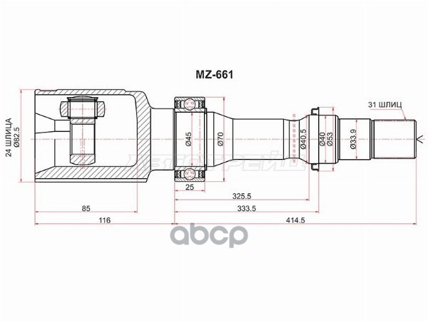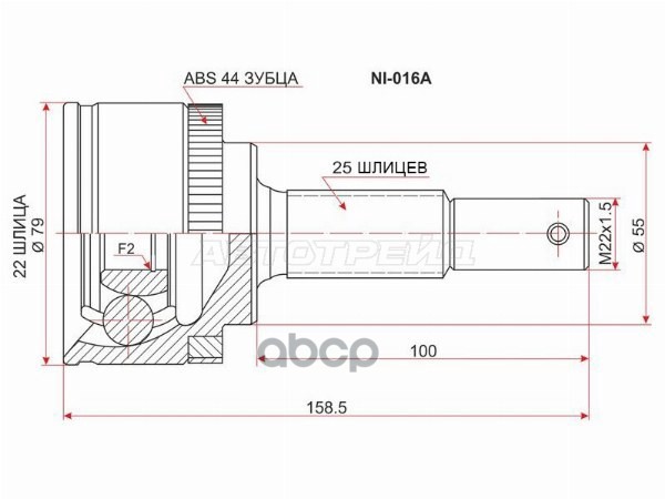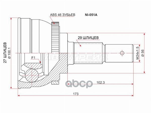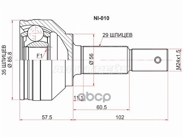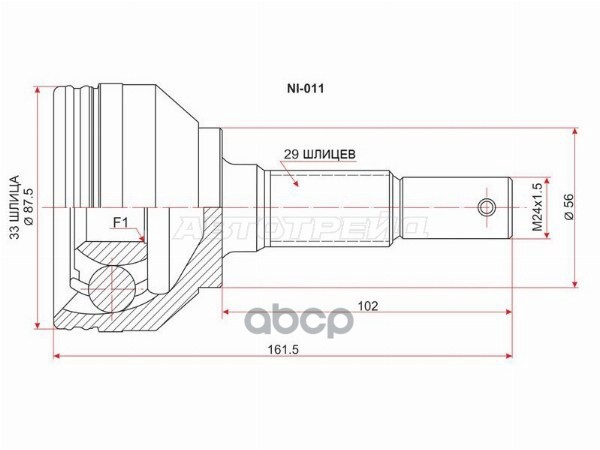 Шрус Nissan HR16DE J10E JJ10E 0210J1016, 0210-J1016, 39100BB02B, 39100-BB02B, 39100JD02B, 39100-JD02B, 39101JD02B, 39101-JD02B, C9211JD02B, C9211-JD02B, C9B11JD02B, C9B11-JD02B, CO3853, CO-3853, NI011
