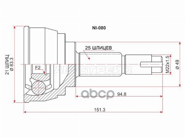 Шрус Nissan HR15DE C11 2WD 39100ED005, 39100-ED005, 39100ED00A, 39100-ED00A, 39101ED005, 39101-ED005, 39101ED00A, 39101-ED00A, CO3705, CO-3705, NI080, NI80, NI-80
